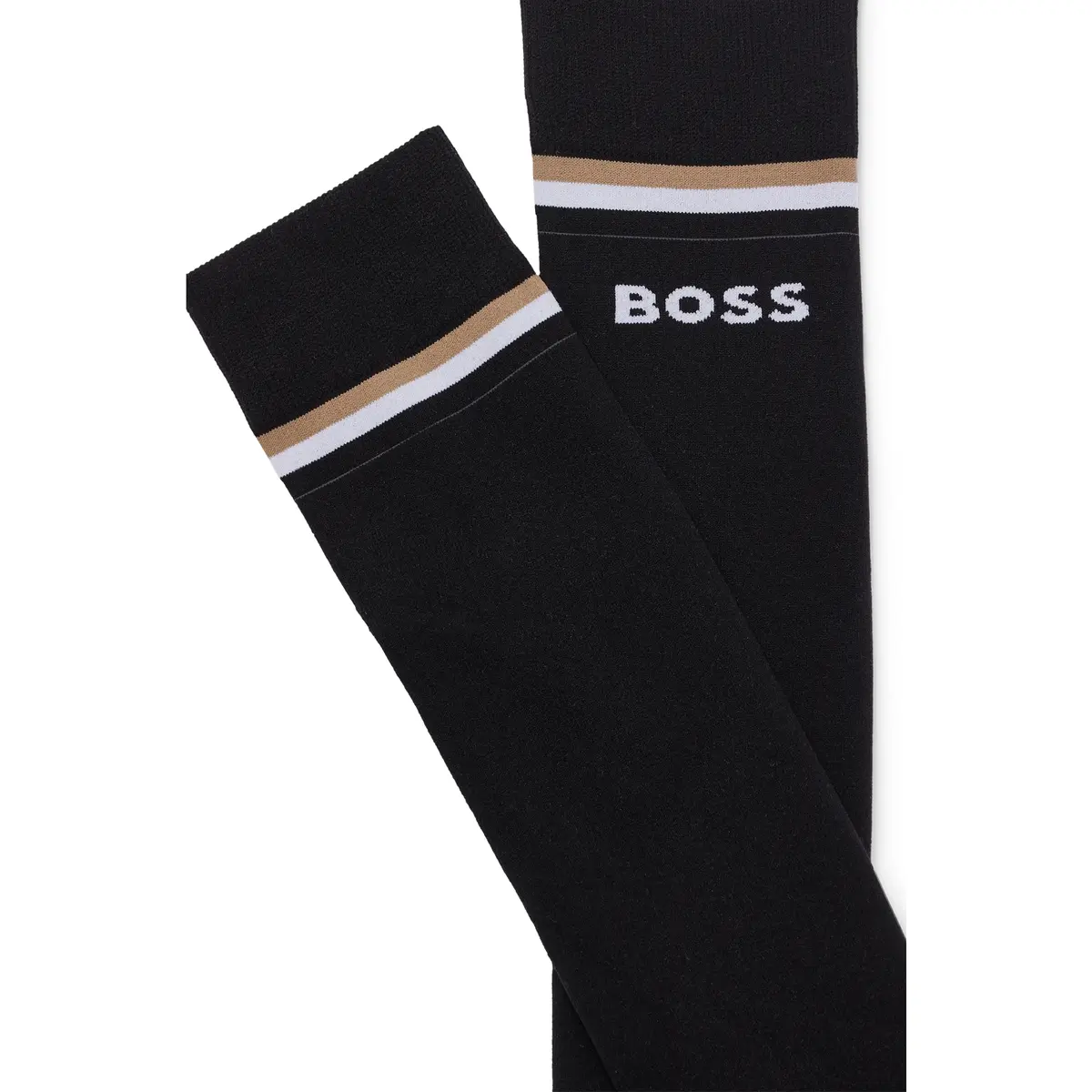 Bekväma höga ridstrumpor i svart med detaljer i Boss klassiska färger, designade för funktion och stil.