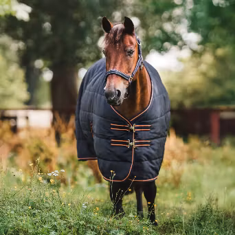 Razzla skyddar din häst från kyla och drag i stallet, särskilt under vår och höst. 100 g polyfill-fyllning ger en behaglig känsla, medan täckets andningsförmåga