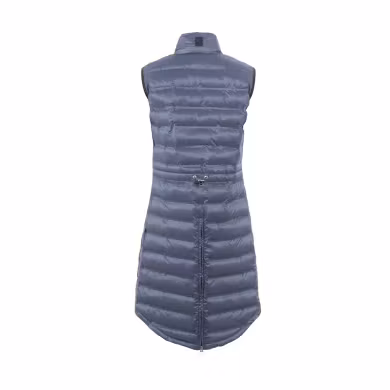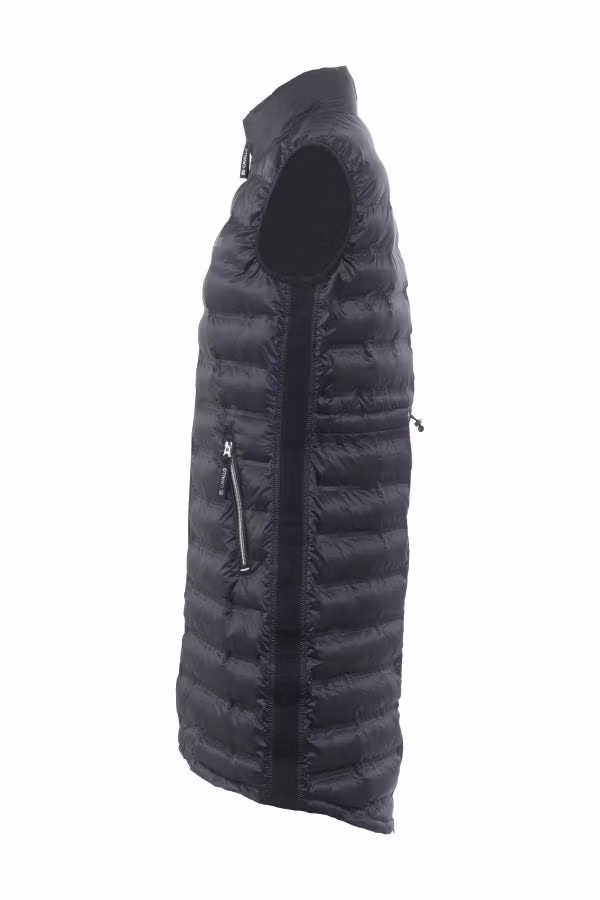 Frida är en lång, härlig väst från Cavallo. Fyllning i fuskdun. Lätt och bekväm modell som håller dig varm utan att vara i vägen. Praktisk 2-vägs dragkedja fram och två fickor med dragkedjor som har en blå Cavallo-bandetikett. Sidosömmen är dekorerad med ett tonalt logotypband. Ärmhålet har elastisk, mörkblå logotejp. Silverlogga på bröstet samt mörkblå Cavallo-logga på kragen mitt bak. Midjan kan justeras med hjälp av en dragsko. Västen är skuren längre baktill än framsidan. En lång dragkedja i mitten bak gör att du enkelt justerar din väst så den blir perfekt i passform när du rider.